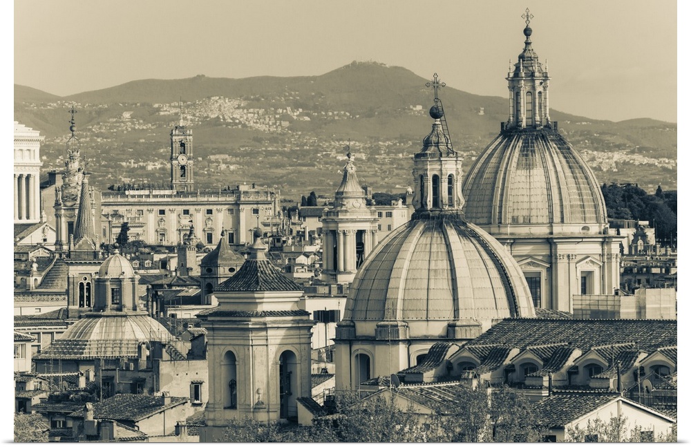 <p>Rome, Italy. Domes, towers and rooftops seen from Castel Sant'Angelo. The historic centre of Rome is a UNESCO World Heritage Site.</p>