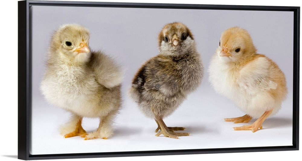 <p>Genetic variation within chickens. These three dya old chicks represent years of selective breeding to bring out traits that help poultry producers.</p>