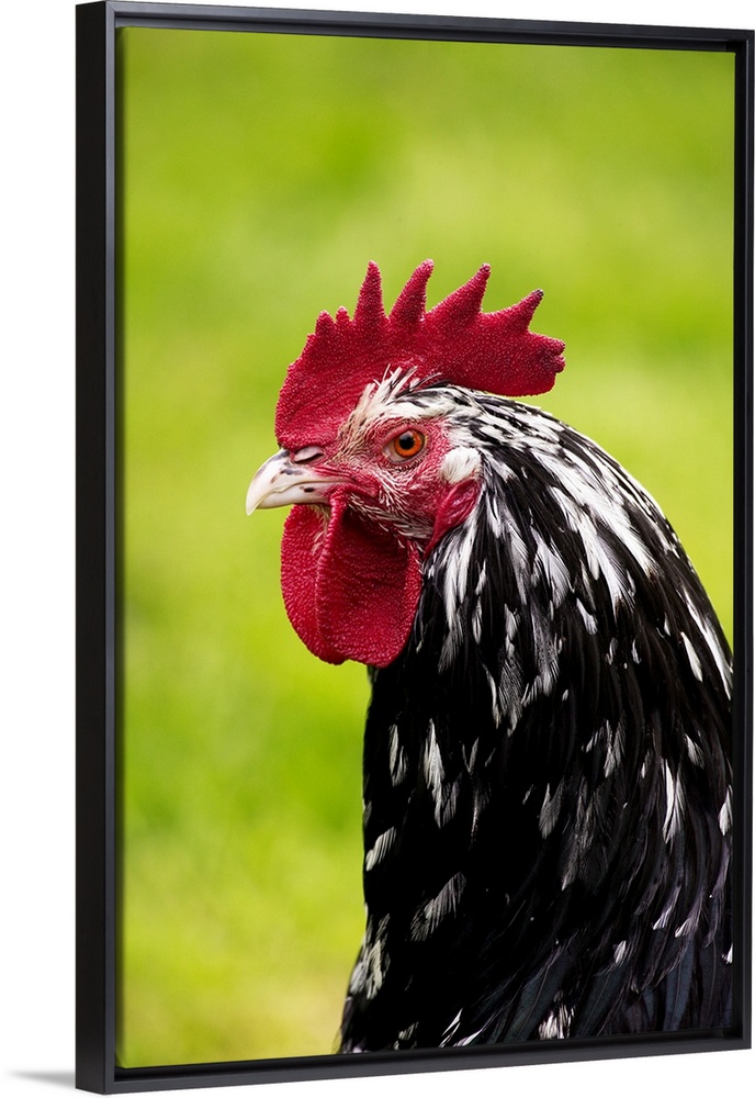 <p>Domestic Chicken, Gournay cockerel, close-up of head, Normandy, France</p>