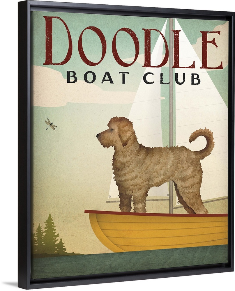 <p>Contemporary artwork of a golden doodle on a sailboat.</p>