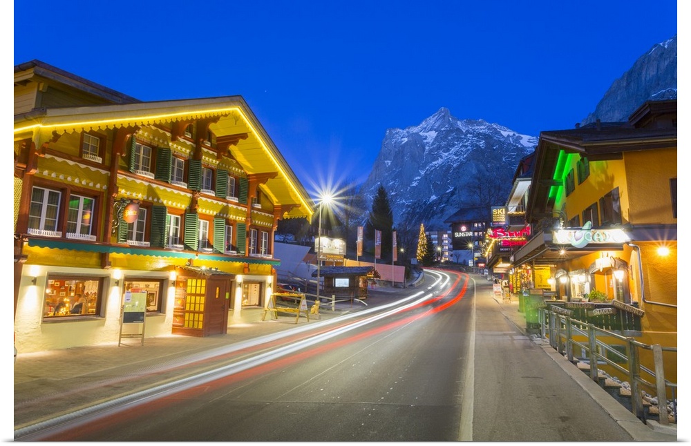 <p>Dorfstrasse and Wetterhorn, Grindelwald village, Jungfrau region, Bernese Oberland, Swiss Alps, Switzerland, Europe</p>