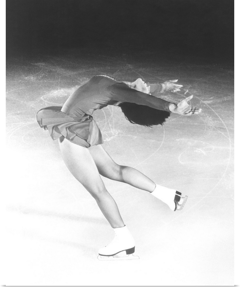 <p>Dorothy Hamill, star skater, performs a layback spin. 1976 Olympic Gold Medalist skated in ICE CAPADES from 1977-84.</p>