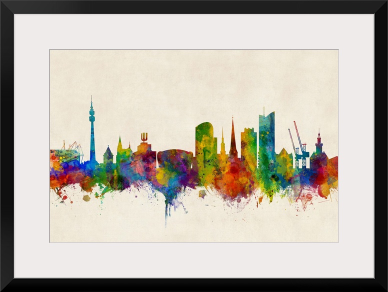 <p>Watercolor art print of the skyline of Dortmund, Germany</p>
