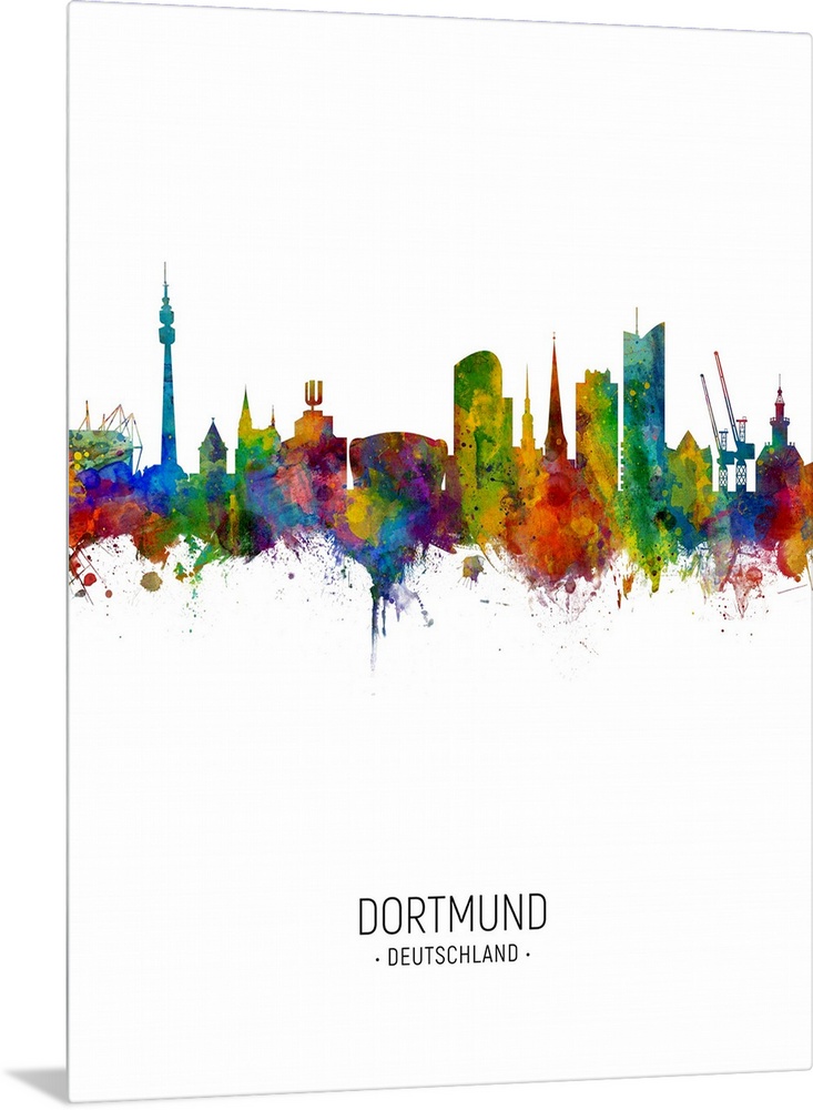 <p>Watercolor art print of the skyline of Dortmund, Germany</p>