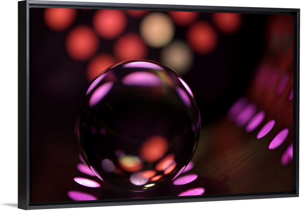 <p>Abstract photo of a glass ball reflecting colored dots.</p>