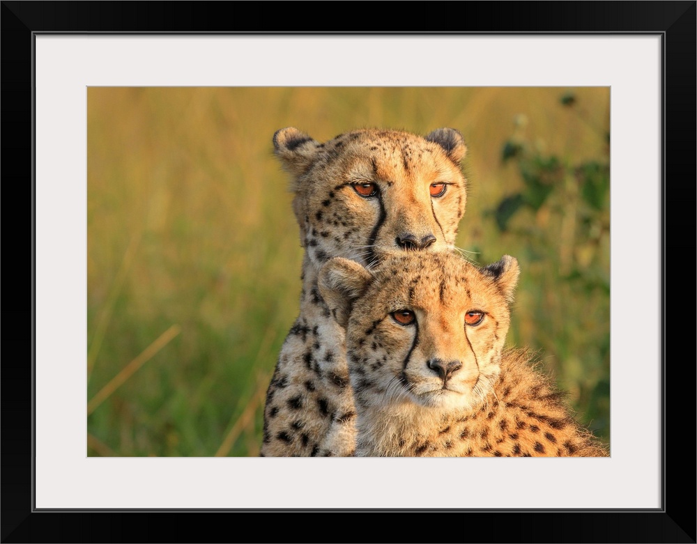 <p>Portrait photograph of two cheetahs side by side.</p>