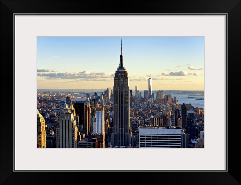 <p>A sunset creates dramatic lighting on the Empire State Building and New York skyscrapers.</p>