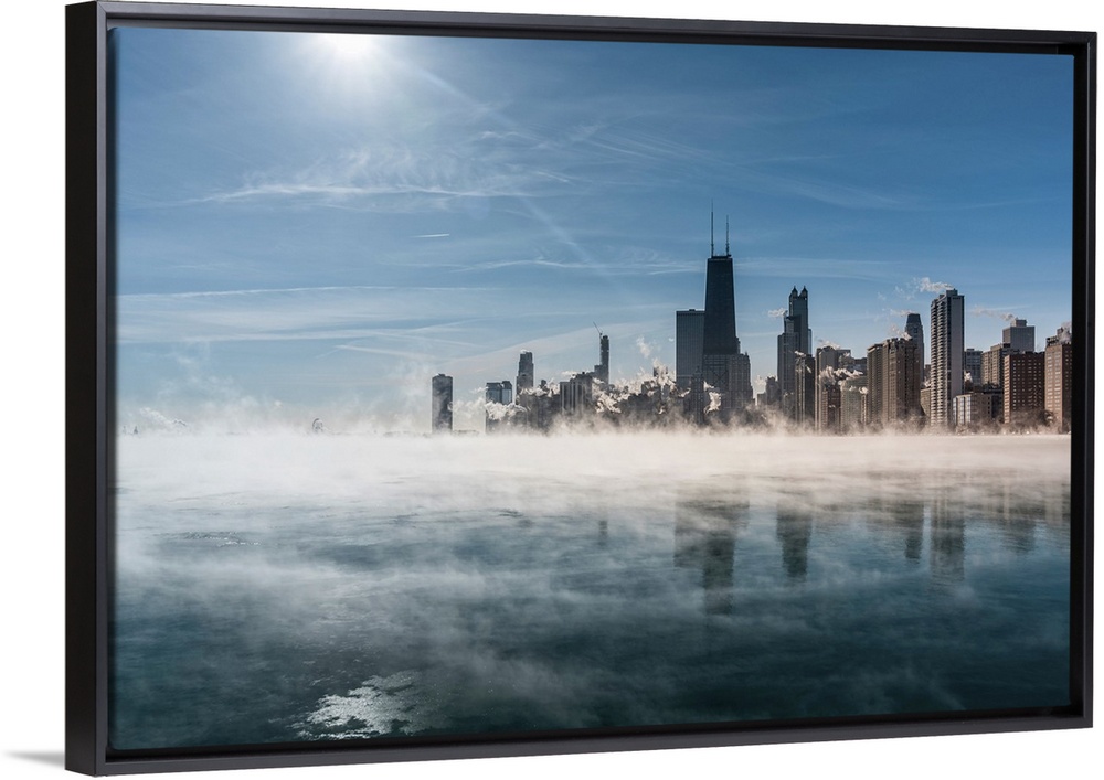 <p>Downtown Chicago Skyline During Winter Polar Vortex As Fog Drifts Across Lake Michigan</p>