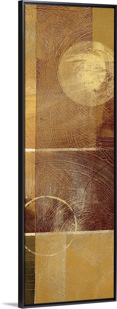 <p>Abstract painting in warm brown shades, with circular shapes and blocks of color.</p>