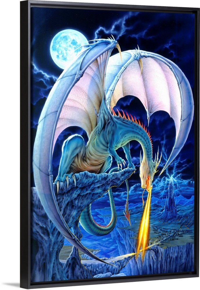Art Blue Wall Art Fantasy Dragons Robin Koni Painting