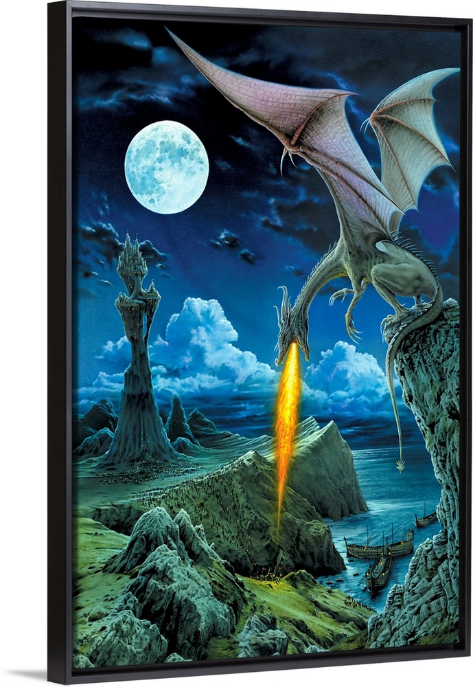 Art Blue Wall Art Fantasy Dragons Robin Koni Painting