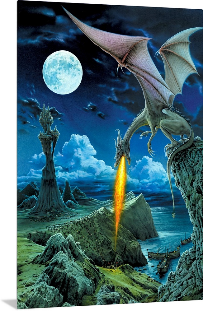 Art Blue Wall Art Fantasy Dragons Robin Koni Painting