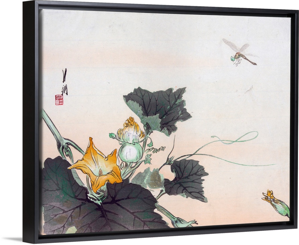 <p>Dragonfly and a Pumpkin Blossom (Kabocha ni tonbou). Circa 1900. Color woodcut. 24.7 x 30.3 cm. Private collection.</p>