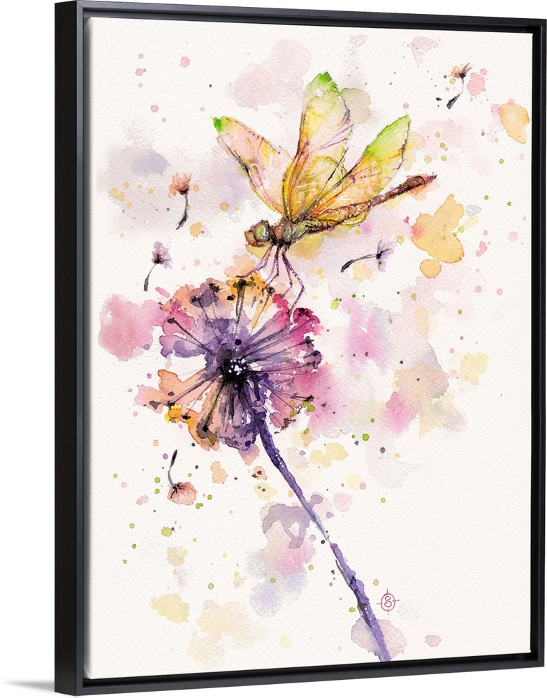 Art Children's Art Decorative Art Florals Dandelion Painting Sillier than Sally Watercolor Insect and Arachnid Dragonfly