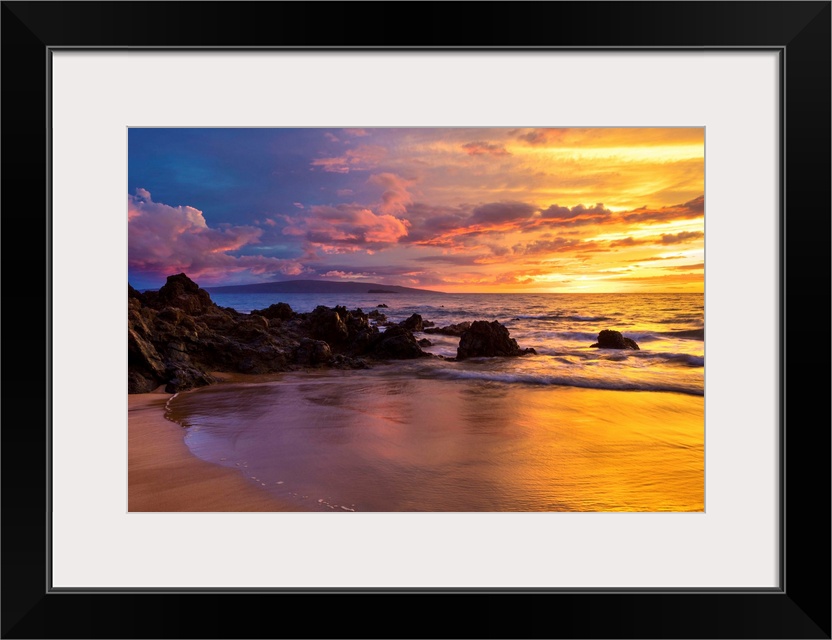<p>Dramatic clouds during a sunset on a beach; Makena, Maui, Hawaii, United States of America.</p>