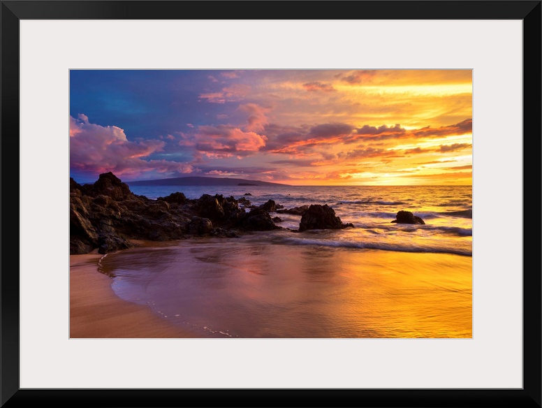 <p>Dramatic clouds during a sunset on a beach; Makena, Maui, Hawaii, United States of America.</p>