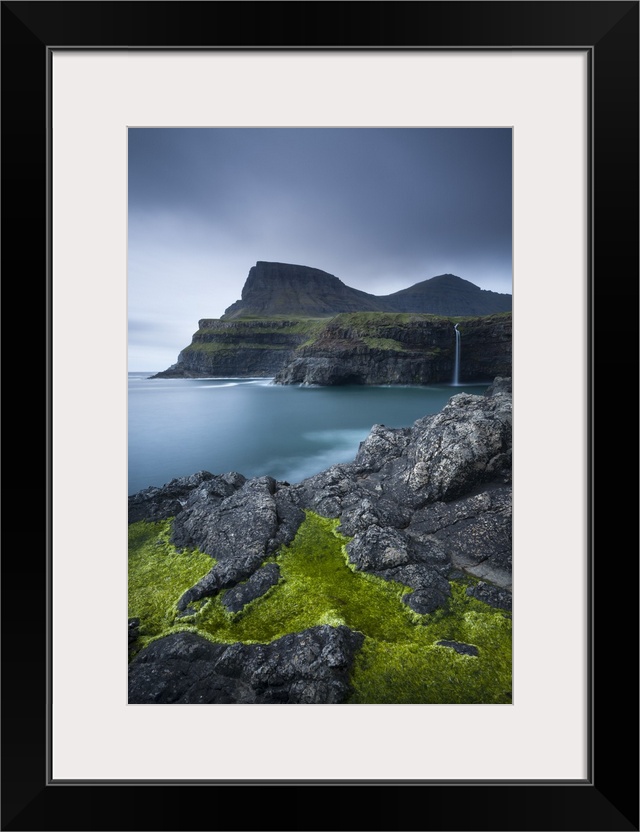 <p>Dramatic coastline and waterfall at Gasadalur on the Island of Vagar, Faroe Islands. Spring</p>