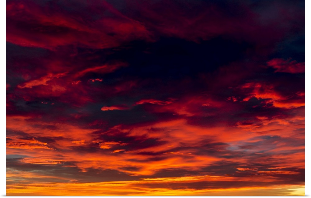 <p>Dramatic colourful cloud formations at sunset; Calgary, Alberta, Canada</p>