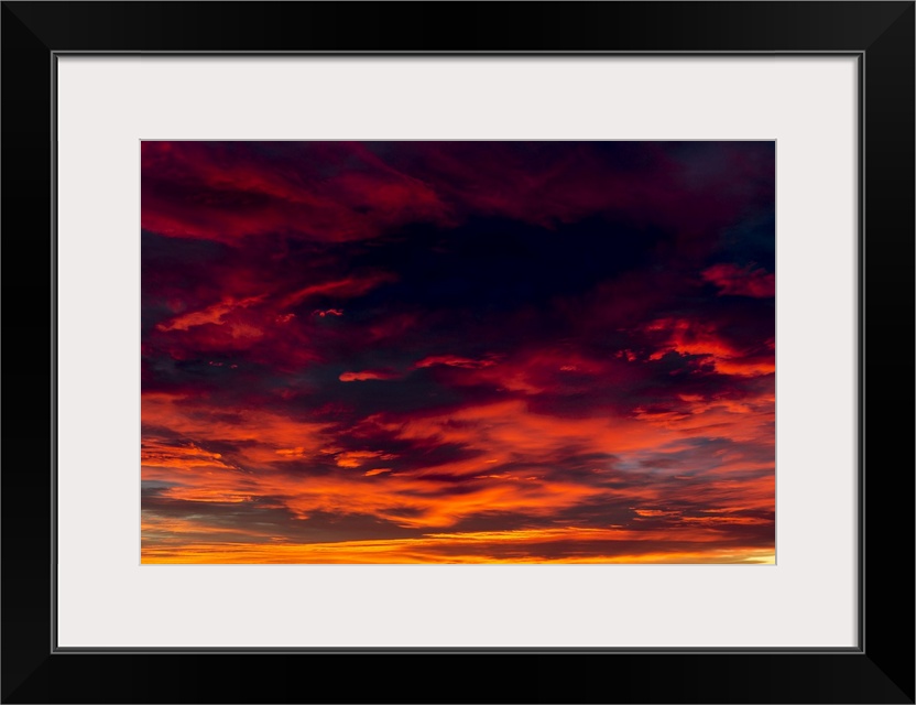 <p>Dramatic colourful cloud formations at sunset; Calgary, Alberta, Canada</p>