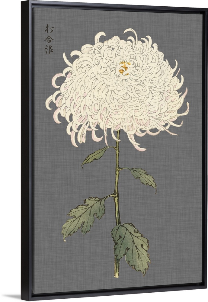 <p>Decorative art with a large ivory mum on a gray textured background.</p>