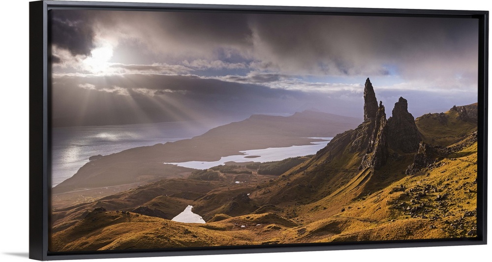 <p>Dramatic light on the Old Man of Storr, Isle of Skye, Scotland. Autumn (November)</p>