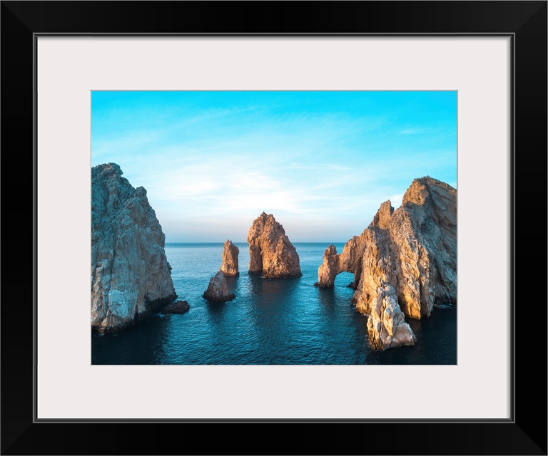 <p>Dramatic rock formations and Arcos de Cabo San Lucas (Arch of Cabo San Lucas) on the coast at Lands End at sunset, Cabo San Lucas, Baja California Sur, Mexico</p>