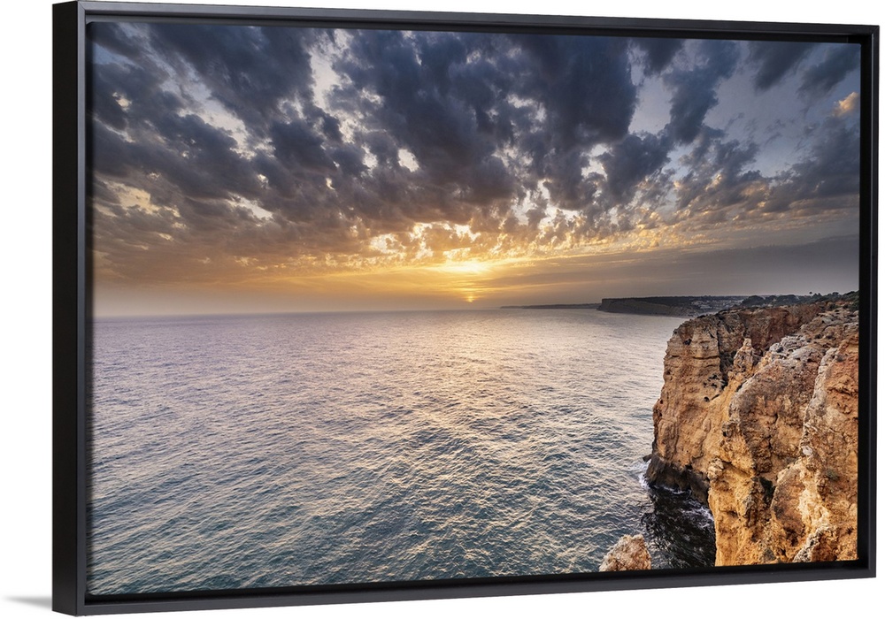 <p>Dramatic sunset clouds over Cliffs along the coast at Ponta da Piedade in Lagos, Portugal.</p>