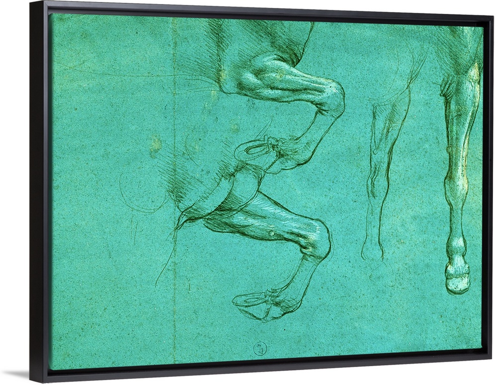 <p>Studies of horse front legs, by Leonardo da Vinci, 15th Century, 1490 about, metal tip and highlights of white lead on blue prepared paper, mm 154 x 205 - Italy, Piemonte, Turin, Royal Library, Dis. Ital. 124. (621867) Everett Collection\Mondadori Portfol</p>