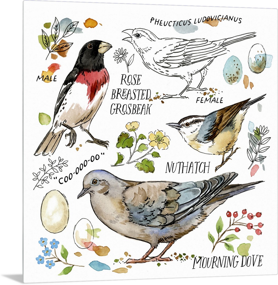 Art Decorative Art Painting Watercolor Wildlife Bird Garden Birds