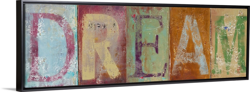 <p>Horizontal typographic artwork of distressed painted letters spelling out an inspirational word.</p>