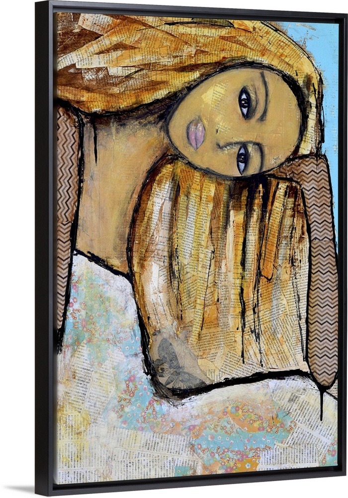 <p>Contemporary painting of a woman holding her head in her hand.</p>