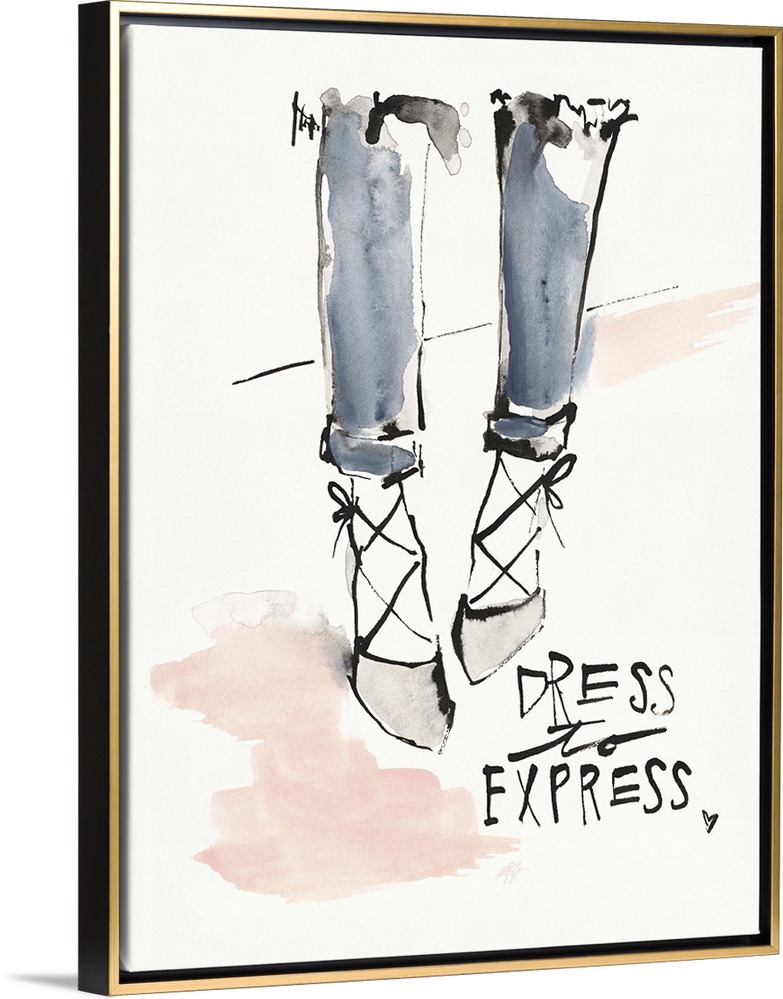 <p>Watercolor fashion artwork of laced up heels and jeans.</p>