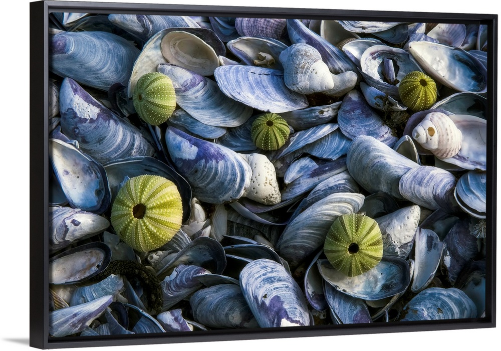 <p>Dried Up Sea Urchin Shells Lie Admist A Bed Of Shells Along The Shoreline Of The Ocean, South Africa</p>