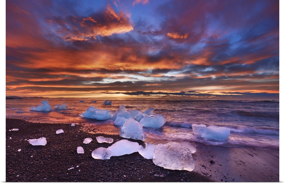 <p>Drift ice on lava beach. Iceland, Eastern Region, Jokulsarlon. Vatnajokull National Park. Jokulsarlon, Western Europe, Iceland.</p>