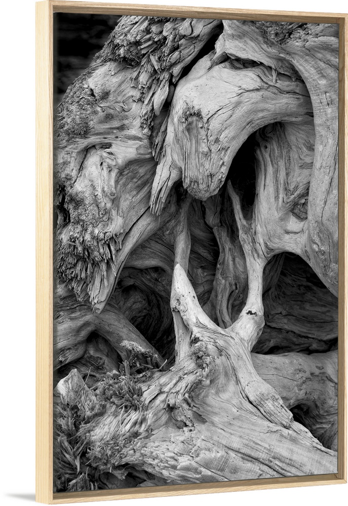 <p>Twisted root structure of a large log of driftwood.</p>