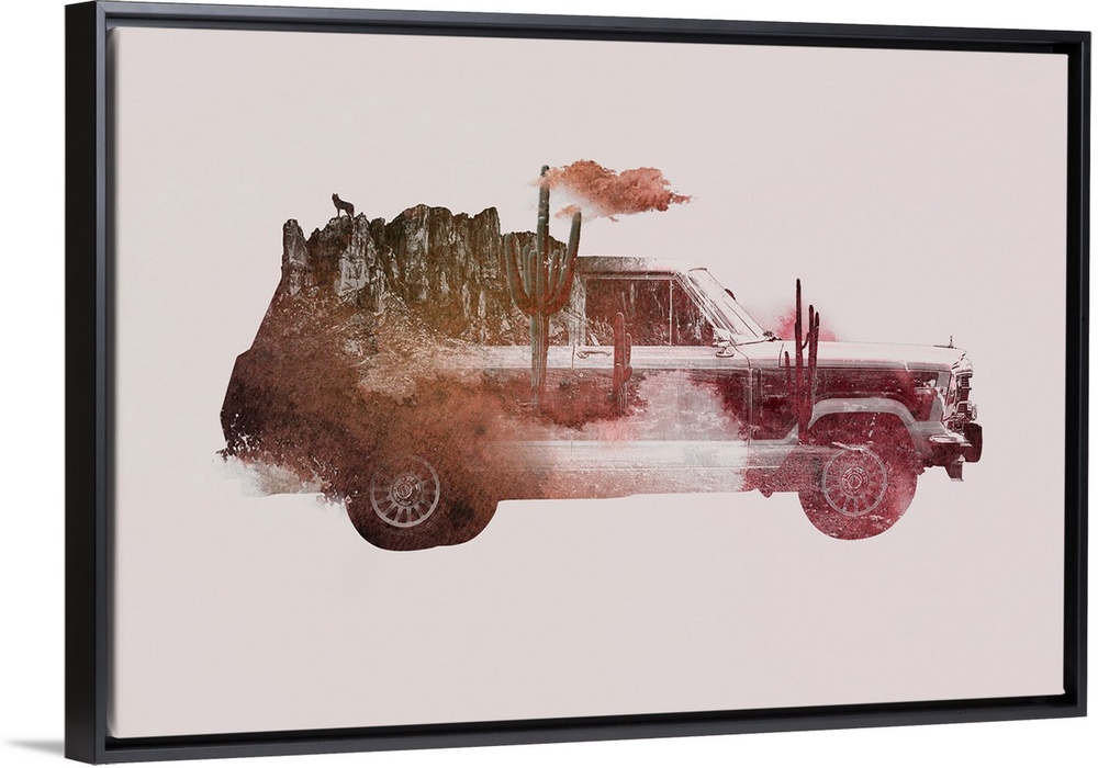 <p>Double exposure artwork featuring a station wagon and a desert scene.</p>