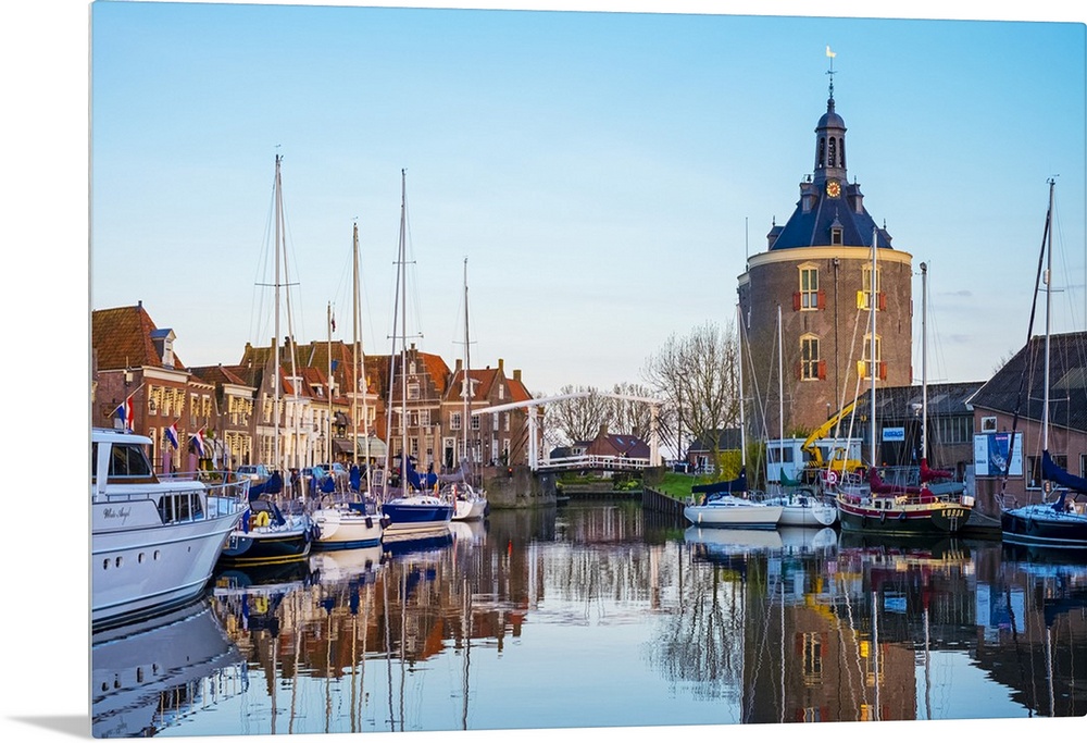 <p>Netherlands, North Holland, Enkhuizen. Drommedaris tower, historic former city gate at the entrance to Oude Haven (Old Harbor).</p>