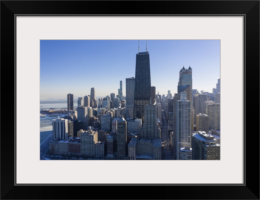 <p>Drone Shot Of City Of Chicago Downtown District At Winter</p>