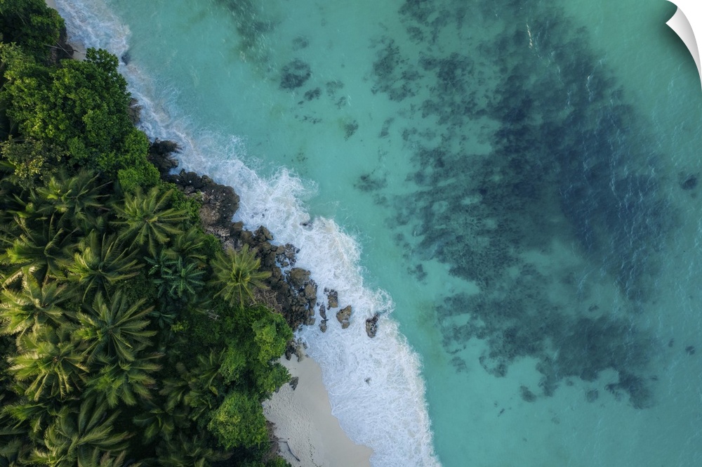 <p>Drone view of Pantai Kelapa lima, a beautiful tropical beach in Indonesia. Kelapa lima, Banggai Laut, central Sulawesi, Indonesia.</p>