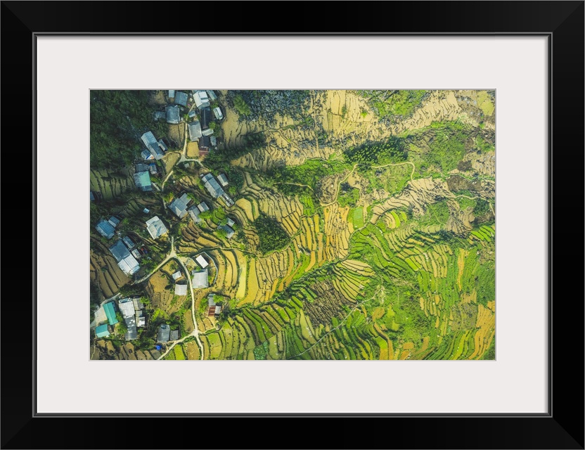 <p>Drone view of rice terraces; Ha Giang Province, Vietnam.</p>