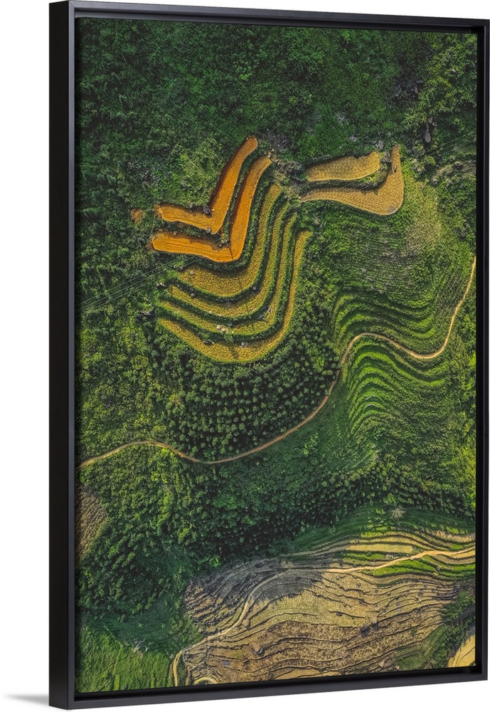 <p>Drone view of rice terraces on the lush mountainside; Ha Giang Province, Vietnam.</p>