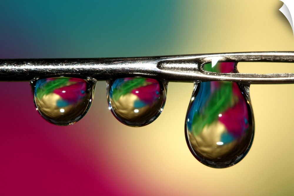 <p>Water droplets on a dressmakers needle</p>