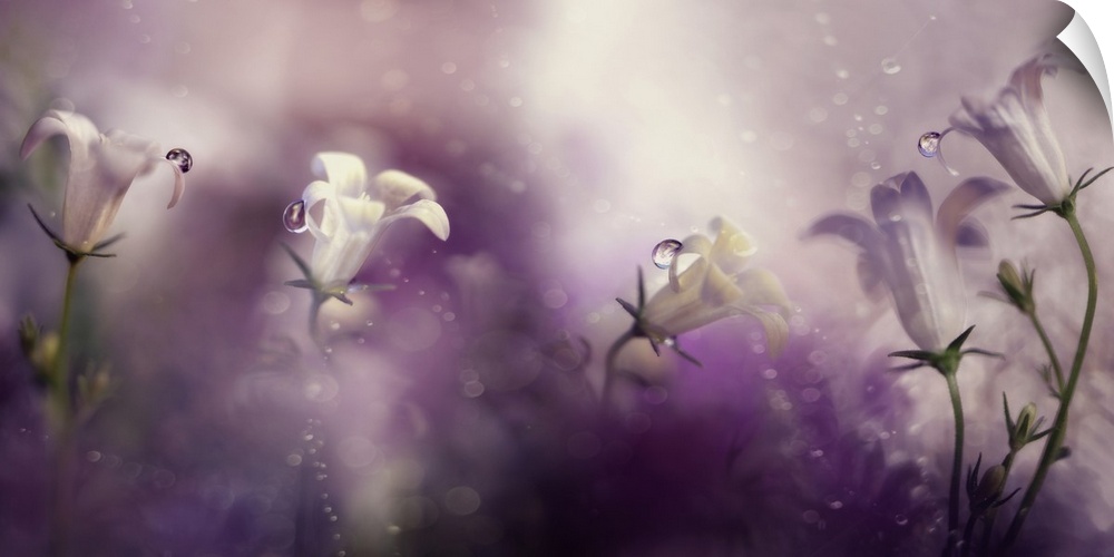 <p>Hazy purple light and bokeh light creating an ethereal floral scene.</p>