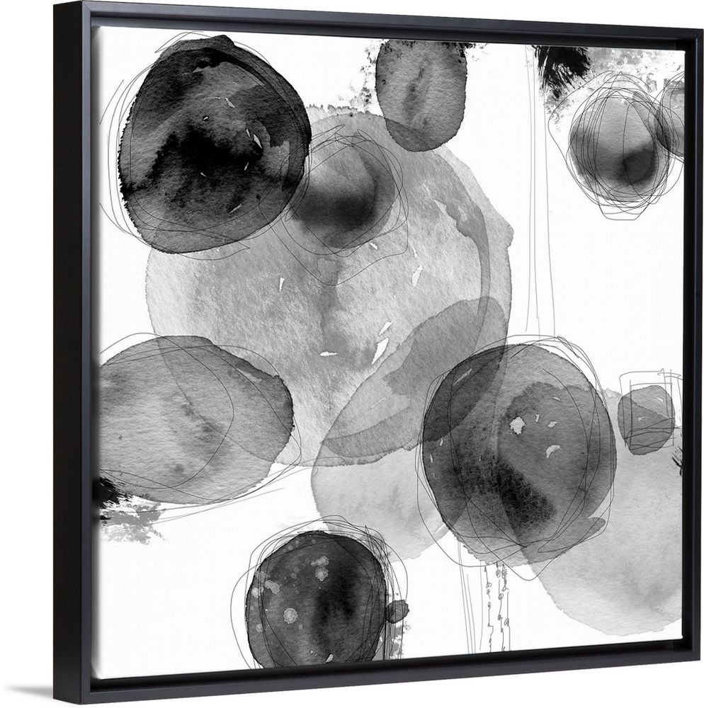 <p>Abstract watercolor painting of circular shapes in shades of grey.</p>