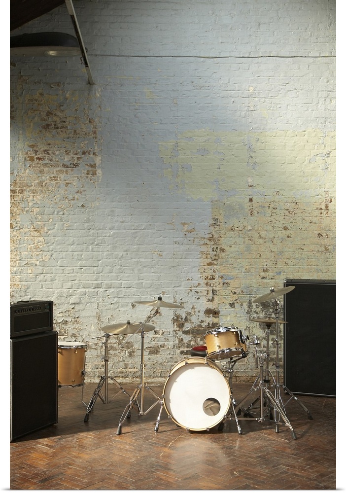 <p>Drum kit set up in studio.</p>