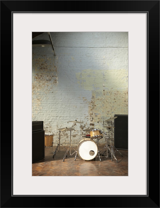 <p>Drum kit set up in studio.</p>
