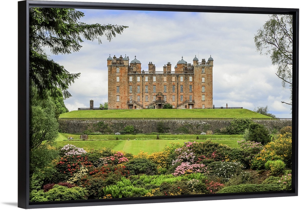 <p>Drumlanrig Castle, known as the Pink Palace due to its colourful sandstone, a 17th century castle on the Queensbury Estate, popular for its gardens, adventure trail and hiking, Drumlanrig, Thornhill, Dumfries and Galloway, Scotland, United Kingdom, Europe</p>