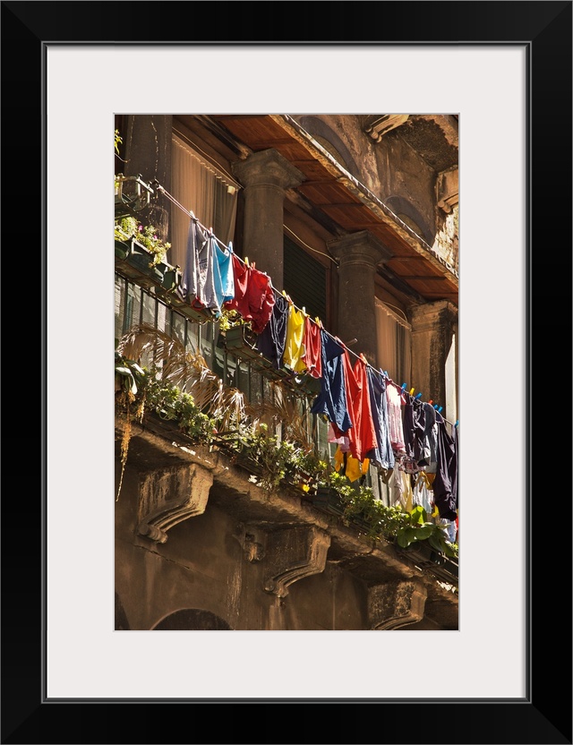 <p>Italian building with balcony and hanging washing in Venice</p>