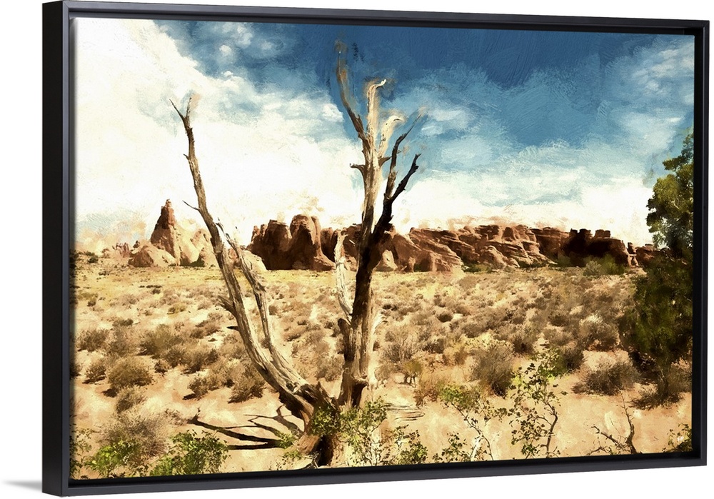 <p>A photograph of a desert landscape with a painterly effect.</p>