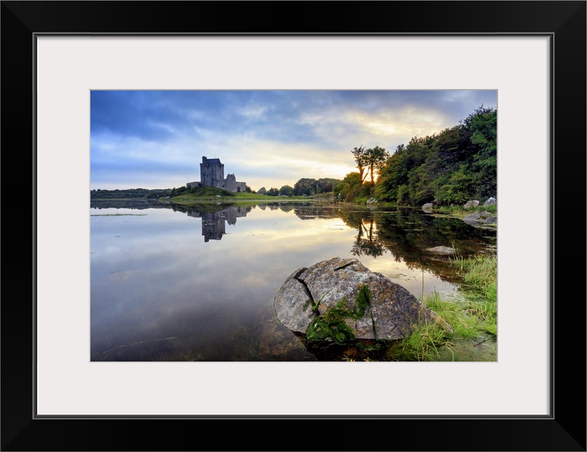 <p>Europe, Dublin, Ireland, Dunguaire castle in Kinvara village at sunrise reflecting in the ocean</p>